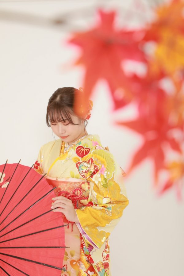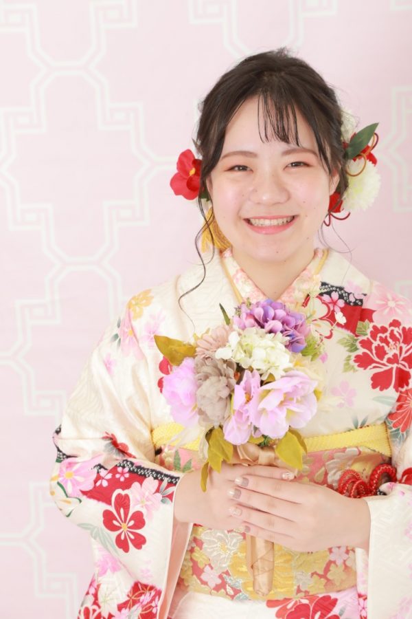 小物選びが楽しめたり、明るい髪色とも合いやすく、自分色が出せる振袖です。