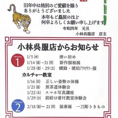 お客様各位平素は格別のお引き立てを賜りありがとうございます。誠に勝手ながら明日の「はたちを祝う記念式典」準備のため本日、
